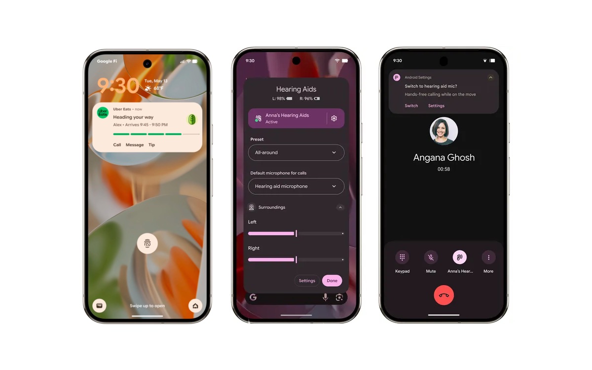 Parmi les nouveautés, on trouve l’arrivée des “mises à jour en direct” dans les notifications. Cela permet de suivre une commande ou un trajet sans ouvrir d’application. Android 16 regroupe aussi automatiquement les messages d’une même appli, ce qui rend l’affichage plus clair. Pour les personnes équipées d’aides auditives, le système permet désormais de basculer sur le micro du téléphone lors des appels, afin de mieux entendre dans les environnements bruyants. Des commandes spécifiques sont également accessibles depuis les paramètres.