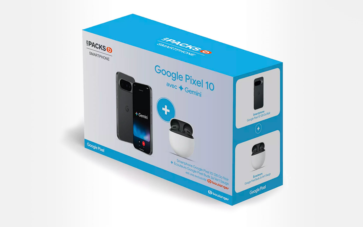 Le Pixel 10 vous fait de l'œil ? Boulanger propose en ce moment une offre intéressante sur le smartphone Google. Le pack incluant les écouteurs Pixel Buds 2a est à un prix largement inférieur à celui du smartphone seul. L'ensemble est affiché à 649 € au lieu de 989 €, ce qui correspond à une réduction de 34%. Pour rappel, le Pixel 10 a été lancé à 899 € dans sa version avec 128 Go de stockage interne et les Pixel Buds 2a à 149 €.