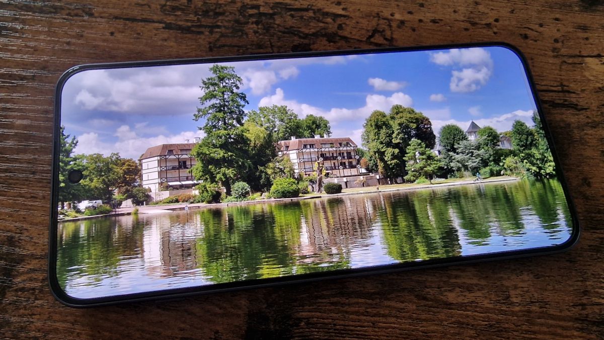 Bon point, les bordures d'écran sont très fines sur les quatre côtés. Du coup, l'affichage occupe près de 94% de la surface de la façade du smartphone. Cela permet de profiter pleinement des photos et des vidéos. Seule la minuscule ouverture, abritant l'objectif photo frontal, est toujours visible.