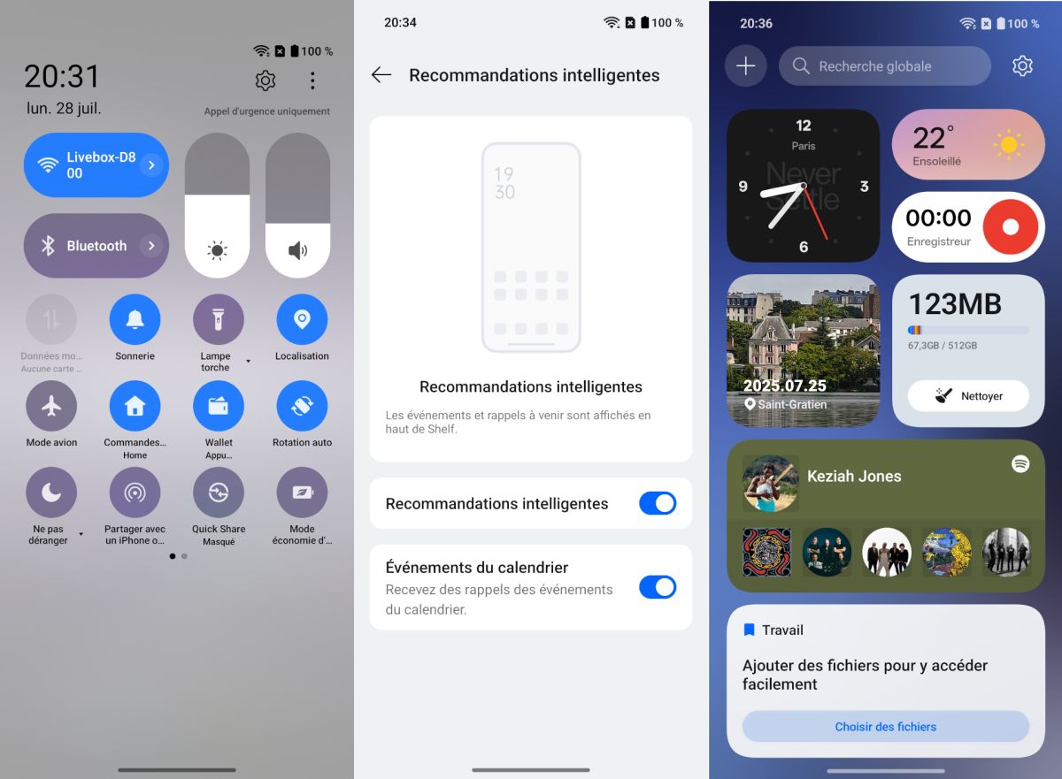 À commencer par Shelf, un écran que l'on peut faire apparaître un peu de la même façon que celui contenant les notifications ou les paramètres rapides, qui peut contenir divers Widgets ainsi que des recommandations intelligentes.
